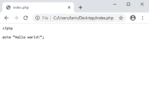 Файл в формате html отображается корректно. Мы видим заголовок первого уровня, который написали, а вот php-файл выводит код.